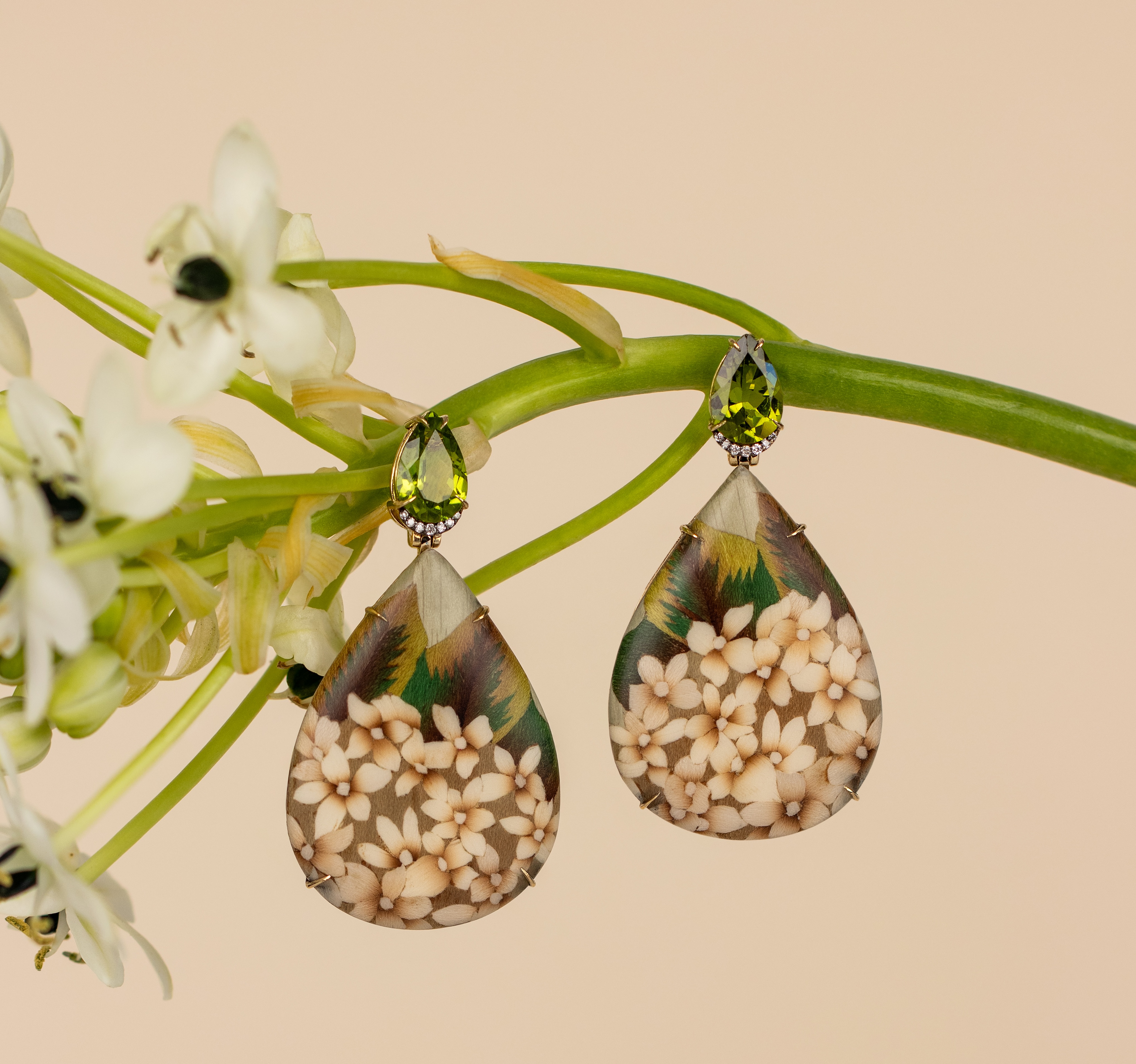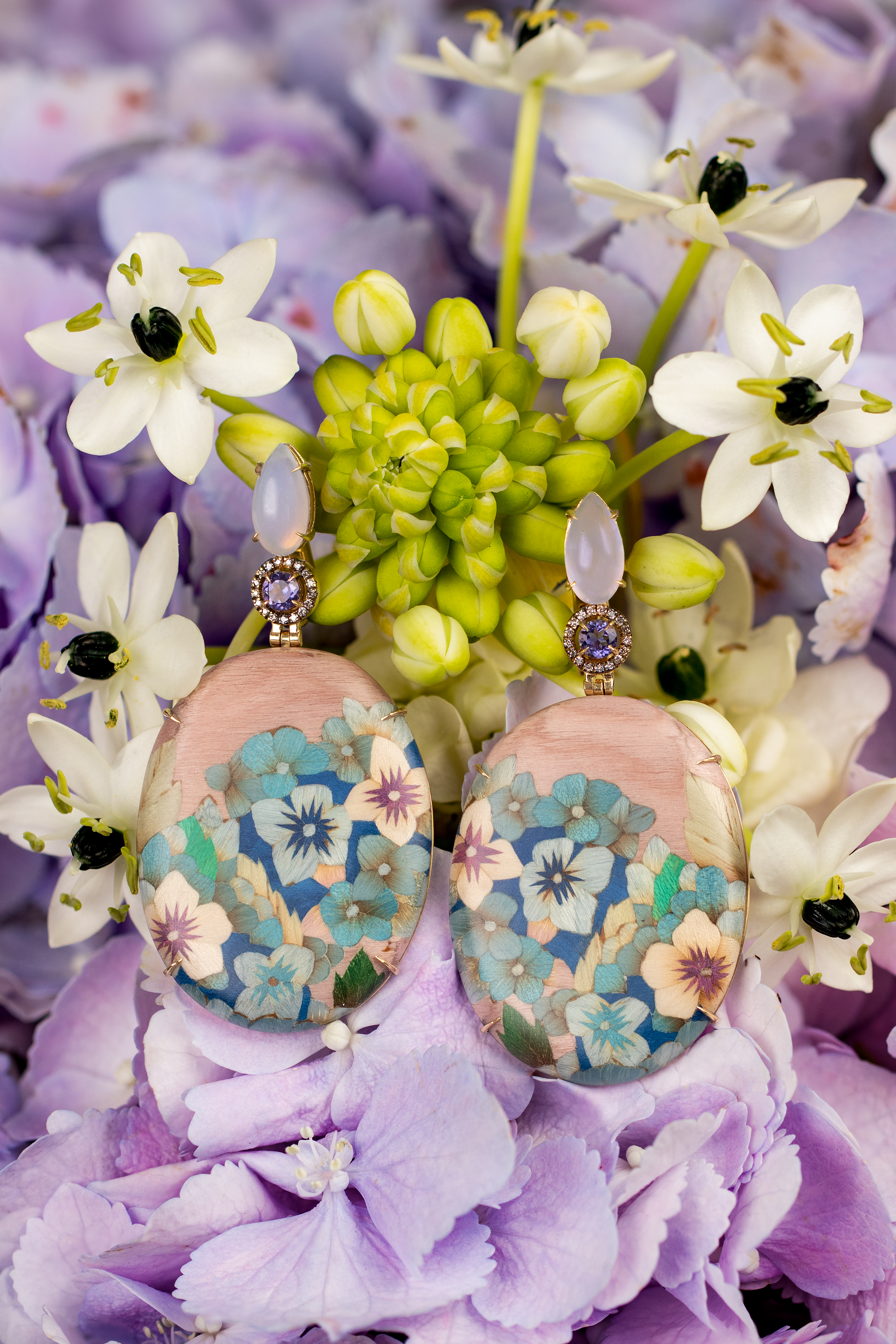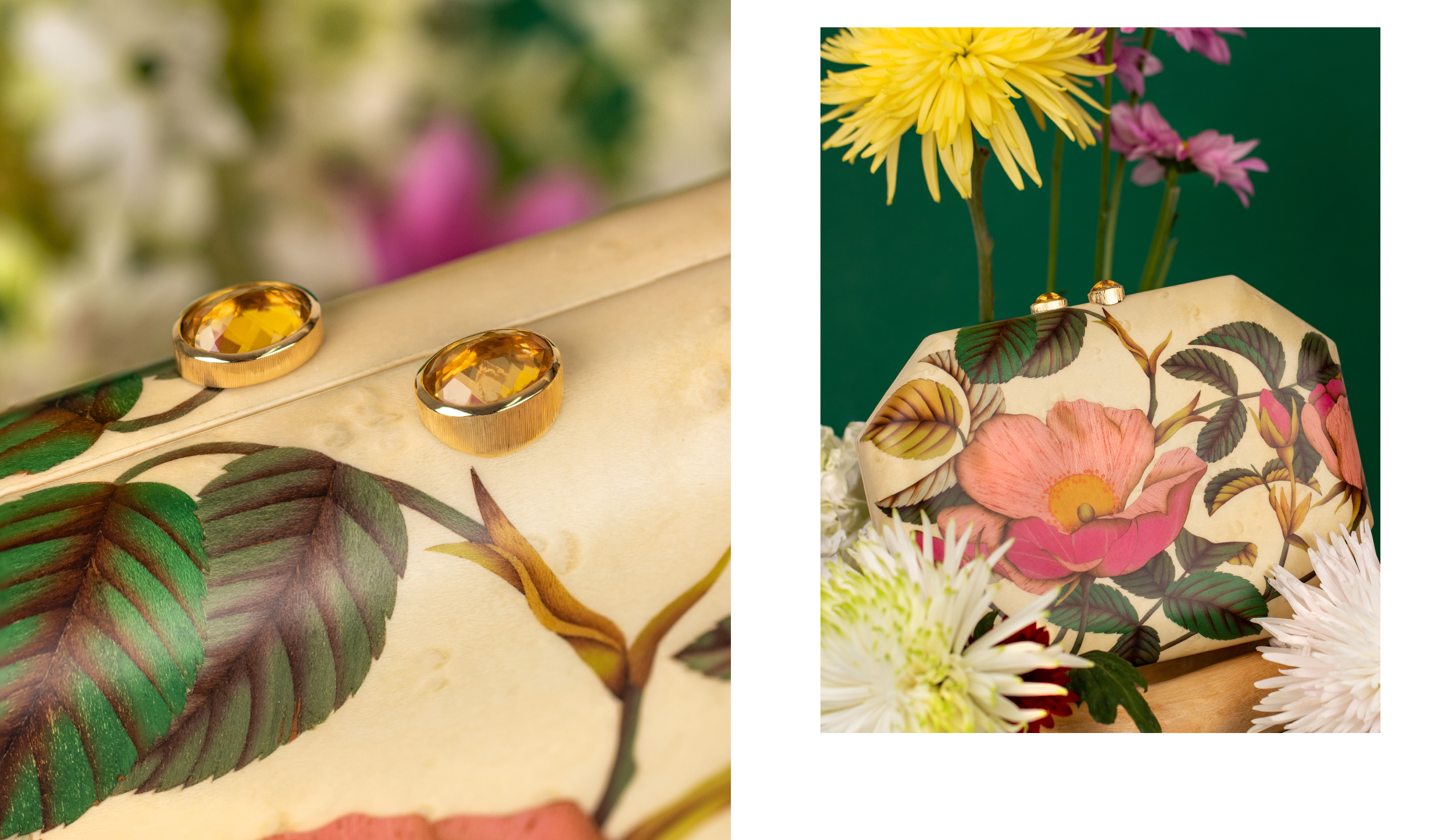This 60-piece capsule of jewelry, clutches, and objects captures the flora, colors and luminous light of Nantucket. From painterly hydrangeas and Ponderosa motifs to delicate white gates, each piece pays homage to the island’s rich craftsmanship traditions — reimagined through the lens of marquetry, miniature painting and basket weaving.